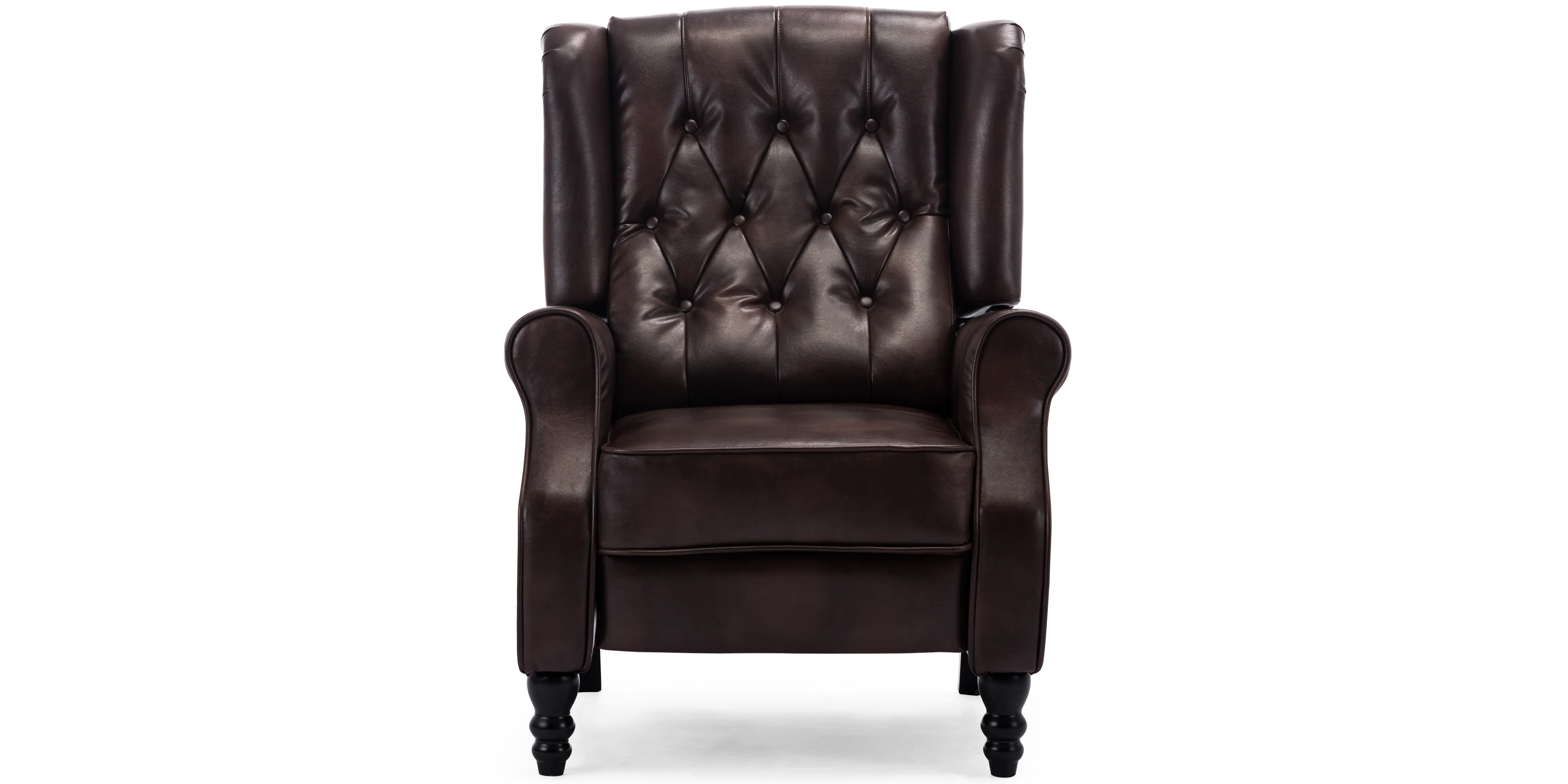 Our Althorpe Push Back Recliner makes a striking impression wherever it goes. This statement chair will happily take centre stage near the fireplace in any living room or make a stylish addition to your study or library. Classic heritage is given a modern twist with a combination of the chair's wingback design, dark wooden legs and stud detailing. This chair is more than just a great looker you know - it comes with a secret recline function too! Sit down and push back to extend the footrest or recline up to an almost sleeping position, and whenever you're ready, kick back and sit right up. You'll love the Althorpe so much, you'll wonder how you ever managed without it. The Althorpe is available in Bonded Leather (Brown), Velvet (Grey and Midnight Blue) and Linen (Grey and Pumice).