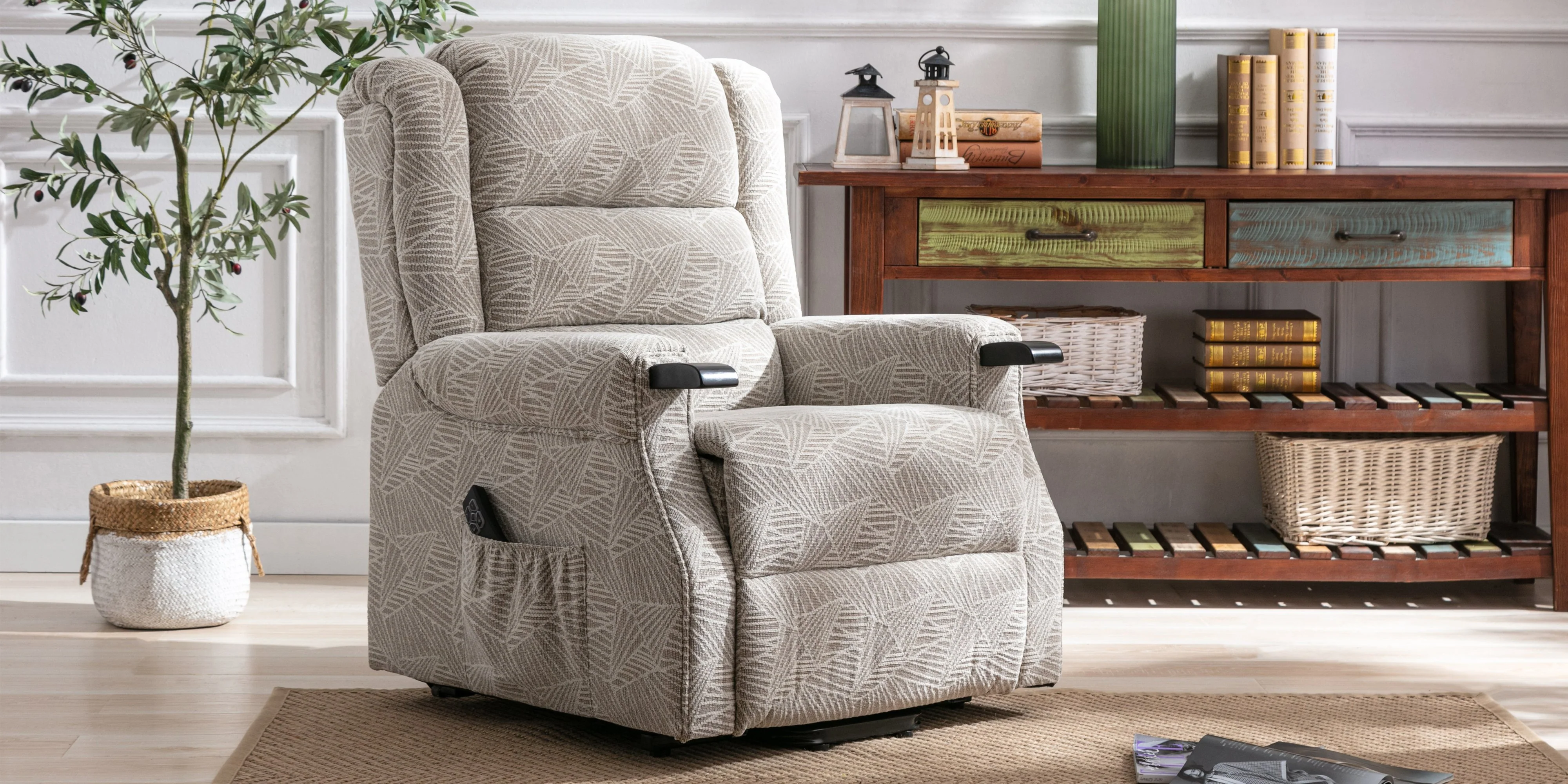 With easy operation via the hand control, changing positions is simple. Pop the control pad in its side storage pocket for quick retrieval. With added support from wide padded armrests to provide assistance all the way to your fingertips and a lift and assist forward tilt feature, getting in and out of an armchair is easy again.