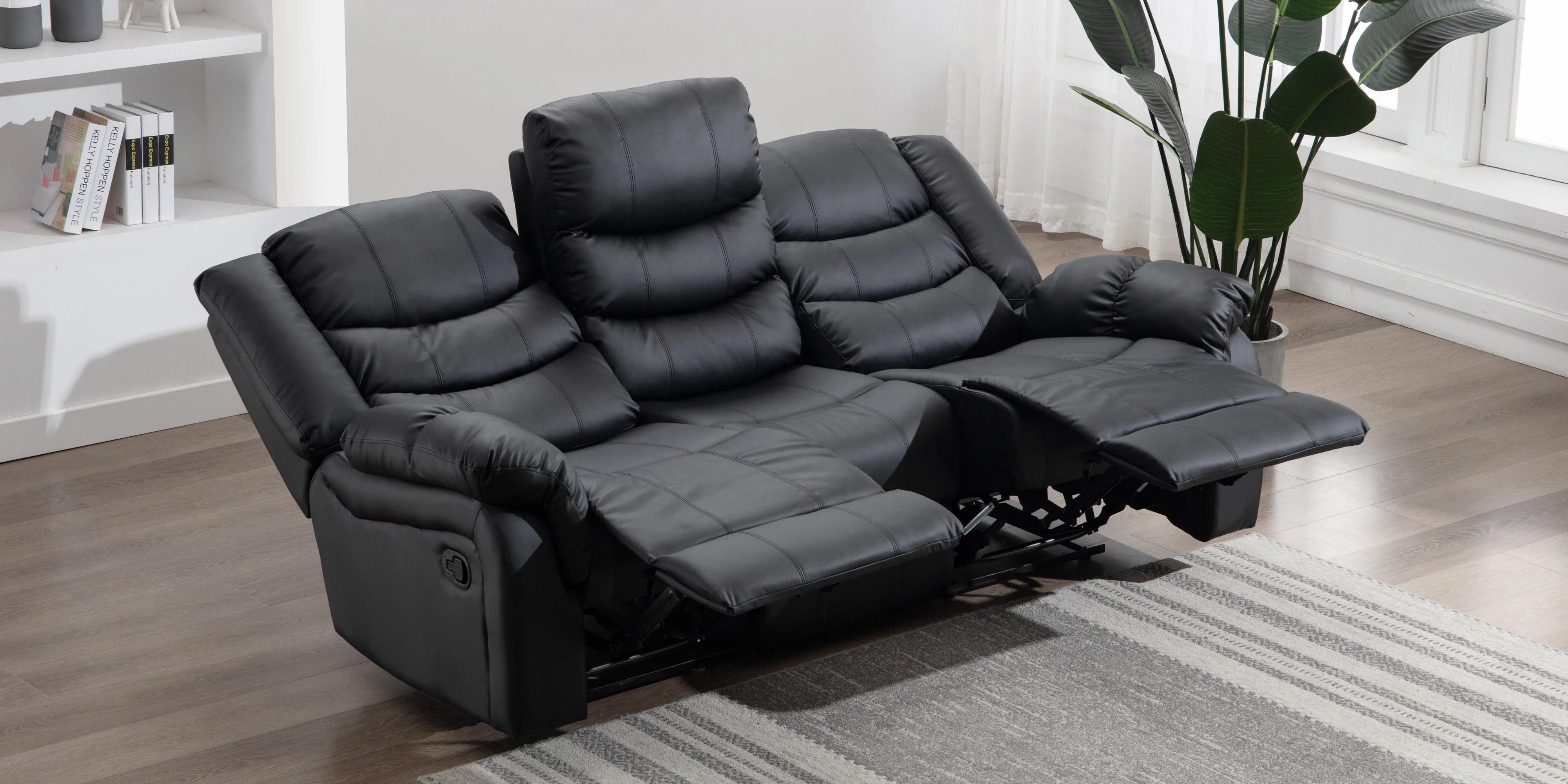 With its plush design, the Seattle Manual Latch Sofa combines style and comfort. Part of our Premier sofa collection, this cosy sofa is upholstered in easy to clean, bond grade leather making it a practical choice for families. Curvaceous seats recline individually, enabling you to put your feet up for a quick nap – the perfect solution for when another family member wants to stay seated upright. Lift the latch on the side of the sofa to control the recline function. With its soft padding and excellent lumbar support, this smart sofa can be purchased individually as two and three-seaters, or as a set including the Seattle Manual Latch Recliner Chair - available in black or brown.